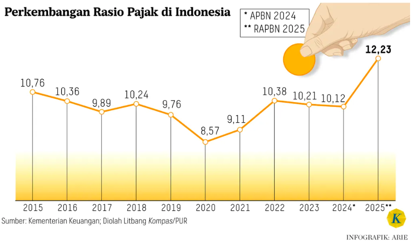 ”Buktinya, rasio pajak stagnan, bahkan mengalami penurunan yang cukup besar dibandingkan sekitar dua dekade lalu,” kata Dradjad yang juga sebagai ekonom Sustainable Development Indonesia (SDI).